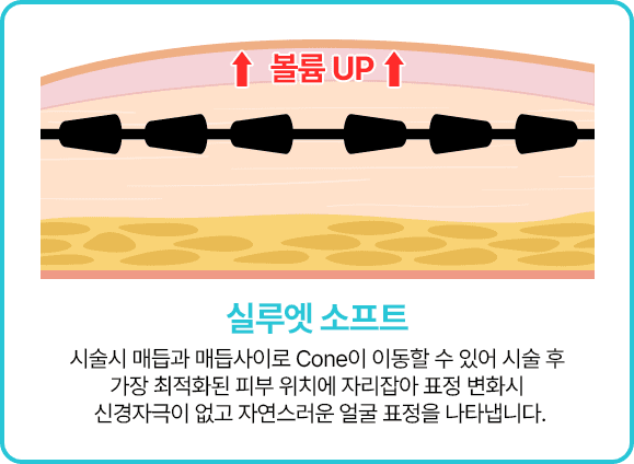 안면윤곽 볼륨 시술로 탄력을 잃고 처진 피부를 콘 모양의 실을 넣어 피부층을
